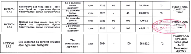 НИТХ-ын 2024 оны 09 дүгээр сарын 24-ний өдрийн 134 дүгээр тогтоолоор “Нийслэлийн хөгжлийн 2025 оны төлөвлөгөө”г баталсан. Тус төлөвлөгөөний НХТЖҮЧ-9.7.2